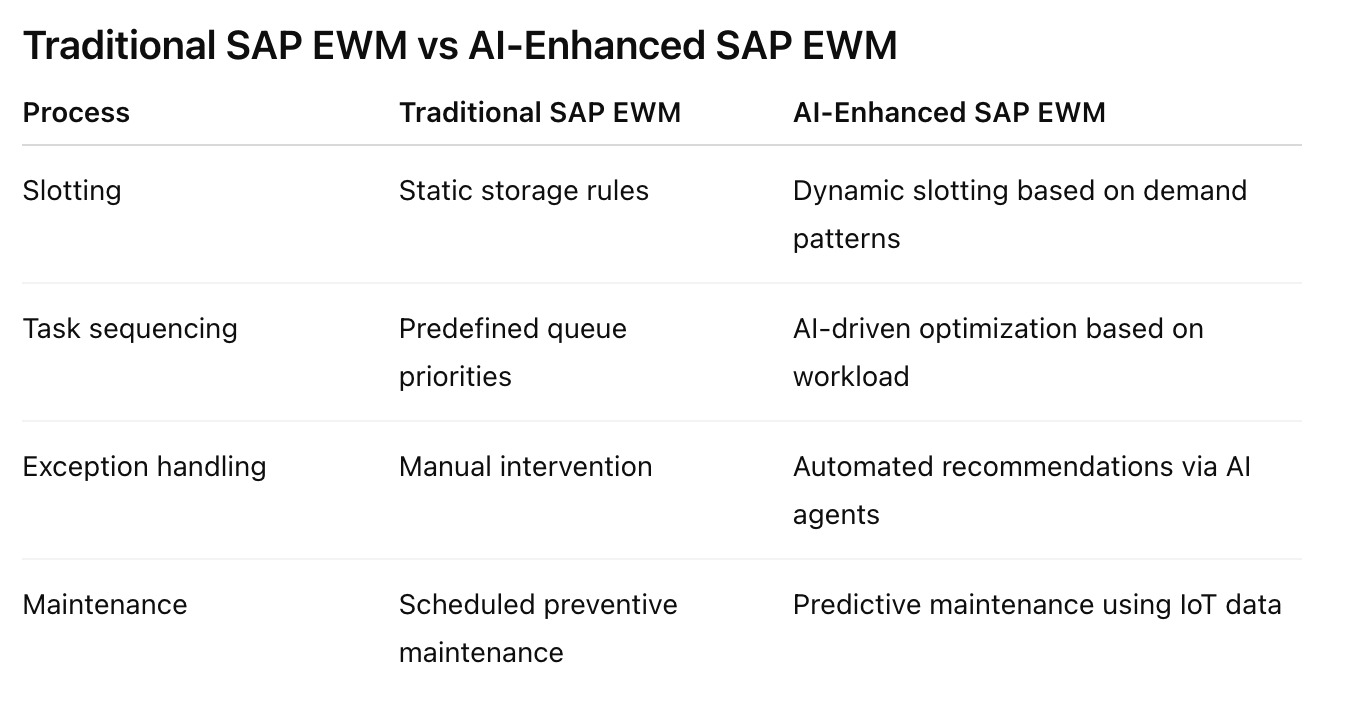 AI transforms SAP EWM from a reactive execution system into a predictive operational platform.
